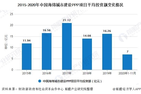 具體到項目平均投資額來看,2015年以來,我國海綿城市PPP項目平均投資額基本維持在10億元/項以上水平,2017年,海綿城市PPP建設平均投資額為21.12億元/項,為近年最高值。