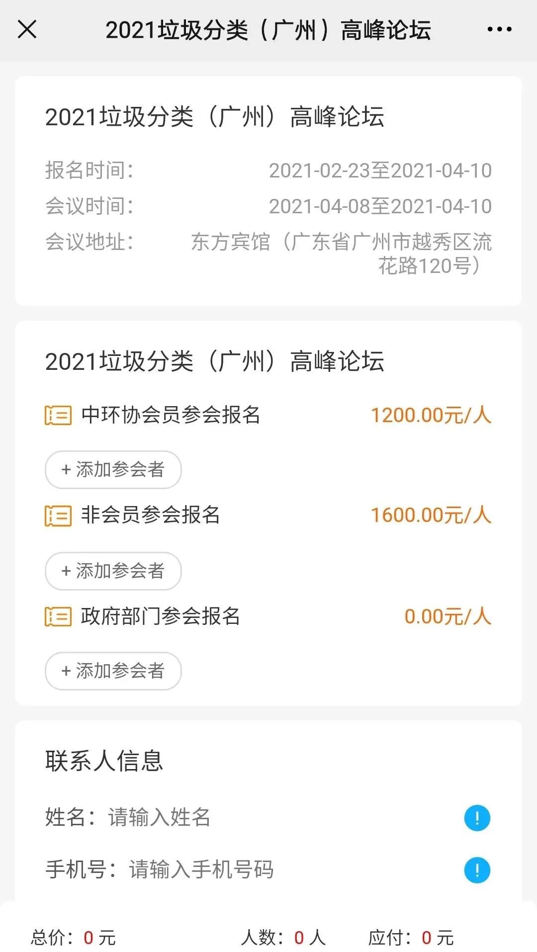 2、根據(jù)參會(huì)單位類別添加參會(huì)者信息;