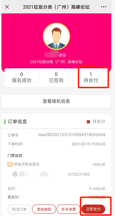 1、參會(huì)代表提交報(bào)名信息后,可在“個(gè)人中心”,點(diǎn)擊“待支付”操作相應(yīng)訂單;