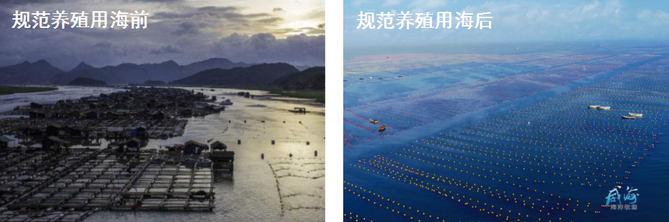 經(jīng)過長期探索,威海市逐步形成了以《海岸帶保護(hù)條例》為保障,以《養(yǎng)殖水域?yàn)┩恳?guī)劃》和《海岸帶保護(hù)規(guī)劃》為引領(lǐng),以“灣長制”、信用分級(jí)分類管理、船舶污染物轉(zhuǎn)運(yùn)聯(lián)單等制度為抓手的“海洋廢棄物”管控制度體系,為推進(jìn)海洋綠色發(fā)展奠定了堅(jiān)實(shí)制度基礎(chǔ)。圖 5 威海市規(guī)范養(yǎng)殖用海前后對比圖