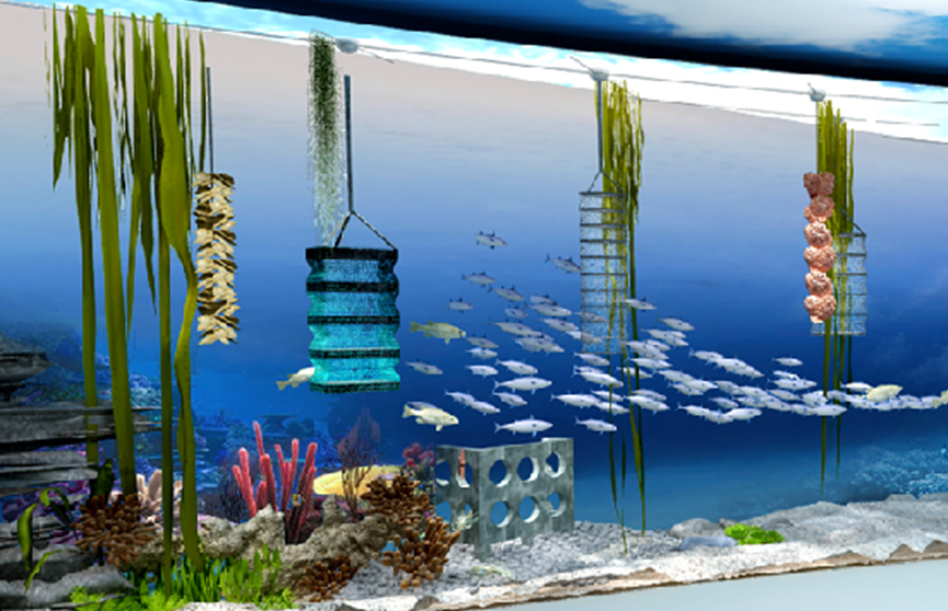 多營養(yǎng)層次綜合養(yǎng)殖模式?!岸酄I養(yǎng)層次綜合養(yǎng)殖模式”是指在同一養(yǎng)殖區(qū)域內(nèi)合理搭配不同營養(yǎng)層級(jí)、養(yǎng)殖生態(tài)位互補(bǔ)的動(dòng)植物,實(shí)現(xiàn)水質(zhì)調(diào)控、營養(yǎng)物質(zhì)循環(huán)利用、生態(tài)防病及質(zhì)量安全控制,在提高養(yǎng)殖效益的同時(shí)減少養(yǎng)殖廢物排放。威海市尋山集團(tuán)與水科院黃海所合作,在桑溝灣海域構(gòu)建“721模式”,即上層養(yǎng)殖海帶,占單位養(yǎng)殖面積的70%;中層養(yǎng)殖貝類、魚類,占單位養(yǎng)殖面積的20%;底層養(yǎng)殖鮑魚、海參,占位養(yǎng)殖面積的10%。該模式與傳統(tǒng)單一養(yǎng)殖模式相比,年產(chǎn)出增加30%,固碳量11萬噸。桑溝灣多營養(yǎng)層級(jí)養(yǎng)殖模式累計(jì)吸引了全世界30多個(gè)國家和地區(qū)的專家學(xué)者前來學(xué)習(xí)考察,成為綠色養(yǎng)殖樣板。圖 6 多營養(yǎng)層次綜合養(yǎng)殖模式示意圖表 1 立體生態(tài)養(yǎng)殖每畝產(chǎn)量及收益情況對比表注:貝類及底播增殖品種養(yǎng)殖周期為2-2.5年工業(yè)化循環(huán)水養(yǎng)殖技術(shù)模式。采用標(biāo)準(zhǔn)化、模塊化、工業(yè)化循環(huán)水養(yǎng)殖技術(shù),通過水質(zhì)測控、糞便收集、水體凈化、恒溫供氧、魚菜共生和智慧漁業(yè)等功能模塊,實(shí)現(xiàn)資源高效利用、循環(huán)用水、環(huán)保節(jié)能和風(fēng)險(xiǎn)控制。該模式養(yǎng)殖全程在相對封閉的養(yǎng)殖池內(nèi)完成,可實(shí)現(xiàn)水資源循環(huán)利用、飼料精準(zhǔn)投喂、污水與廢物近乎零排放,單位水體產(chǎn)出約是普通池塘養(yǎng)殖的20倍,單位產(chǎn)量耗能僅為普通池塘養(yǎng)殖的1/3。