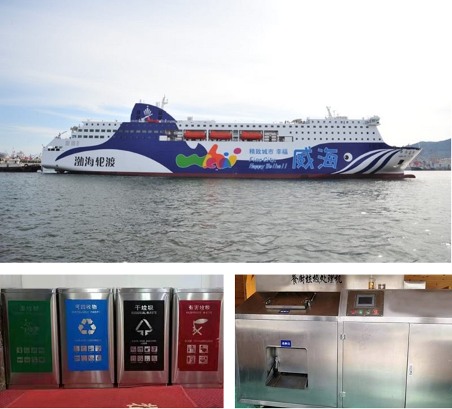 六個(gè)無廢航區(qū)試點(diǎn)項(xiàng)目。根據(jù)海上航運(yùn)污染來源,將“無廢航區(qū)”分解為6大版塊,開展無廢航線、無廢港口、無廢錨地、無廢岸線、無廢客船、無廢船廠建設(shè)。圖 11 六個(gè)無廢航區(qū)重點(diǎn)支撐項(xiàng)目在“無廢航線”方面,在威海至劉公島航線建設(shè)了非開闊水域小型客船智能監(jiān)管系統(tǒng),目前該航線試點(diǎn)船“劉公島”號(hào)的排污口已安裝電磁門閥監(jiān)控設(shè)備,排污設(shè)備處所和生活垃圾分類存放處所均接入視頻信號(hào),實(shí)現(xiàn)船舶污染物收集、排放時(shí)時(shí)監(jiān)控。在“無廢客船”方面,在威海至大連航線客滾船“中華富強(qiáng)”輪上推行生活垃圾分類,并著手配備小型廚余垃圾微生物降解處理裝置,實(shí)現(xiàn)船舶廚余垃圾減量化,打造全國首艘廚余垃圾在船無害化處置客滾船。在“無廢岸線”方面,以成山頭設(shè)備庫為依托,推進(jìn)成山頭“海陸一體化”污染處置設(shè)備庫建設(shè),強(qiáng)化海陸一體化聯(lián)合處置,實(shí)現(xiàn)海洋污染海陸共治。在“無廢港口”方面,通過有效運(yùn)行船舶污染物接收、轉(zhuǎn)運(yùn)、處置聯(lián)單制度,實(shí)現(xiàn)對在港船舶污染物聯(lián)合監(jiān)管和閉環(huán)管理。在“無廢錨地”方面,以威海灣2號(hào)錨地為試點(diǎn),依托交通運(yùn)輸部首個(gè)無人機(jī)項(xiàng)目,重點(diǎn)打造“陸??仗臁币惑w化污染監(jiān)控體系。在“無廢船廠”方面,以招商局金陵(威海)船廠為試點(diǎn)單位重點(diǎn)推進(jìn)垃圾分類、船舶污染物接收轉(zhuǎn)運(yùn)處置聯(lián)單制度。圖 12 威劉“無廢航線”智能監(jiān)控系統(tǒng)圖