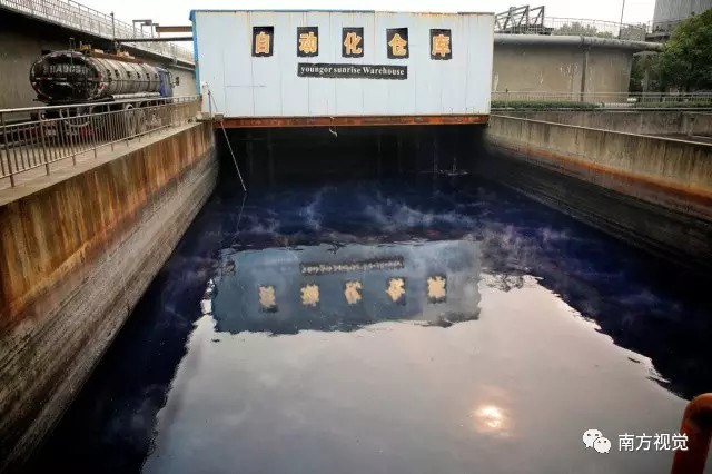 △在凌晨3到5點之間,紡織工廠向河里傾倒的污染物,拍攝于浙江寧波。