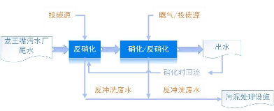 中國市政工程中南設(shè)計研究總院有限公司根據(jù)自身雄厚的技術(shù)實力,提出采用硝化+深度反硝化脫氮主體工藝處理南湖本體湖水和采用前置反硝化+硝化脫氮主體工藝處理龍王嘴污水處理廠尾水,為南湖補水及增強水動力循環(huán)的工藝路線。