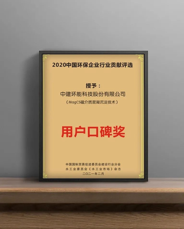 近日,在北京召開(kāi)的村鎮(zhèn)環(huán)境科技產(chǎn)業(yè)聯(lián)盟年度總結(jié)展望會(huì)暨2021年度(第15屆)水處理行業(yè)熱點(diǎn)技術(shù)論壇大會(huì)上,中建環(huán)能MagCS磁介質(zhì)混凝沉淀技術(shù)憑借在水處理領(lǐng)域持續(xù)開(kāi)拓創(chuàng)新,贏得了客戶好評(píng),獲得了良好的經(jīng)濟(jì)效益和環(huán)境效益,被授予“用戶口碑獎(jiǎng)”。