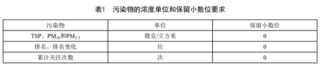 5.2.1 排名評價適用于對單點(diǎn)和屬地各評價項目污染濃度在所處地區(qū)的相對水平及其變化趨勢進(jìn)行評價,包括排名名次、排名變化和累計關(guān)注次數(shù)等。