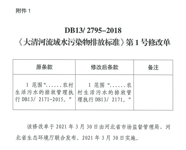 附件:1.DB13/ 2795-2018《大清河流域水污染物排放標(biāo)準(zhǔn)》第1號(hào)修改單