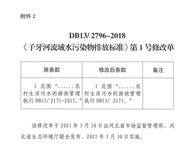 2.DB13/ 2796-2018《子牙河流域水污染物排放標(biāo)準(zhǔn)》第1號(hào)修改單