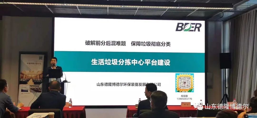 環(huán)博會期間,由中國環(huán)聯(lián)舉辦的固廢技術(shù)論壇在上海錦江酒店隆重召開,山東德隆博德爾環(huán)保裝備發(fā)展有限公司做為中國環(huán)聯(lián)副理事長單位應邀參會。會上由上海博德爾集團副總裁李偉從多角度分析和論述了當前疫情下的垃圾處理形勢,以及未來一段時間內(nèi)垃圾處理行業(yè)的技術(shù)發(fā)展和要點。同時在中國環(huán)聯(lián)舉辦的專業(yè)沙龍上,由公司常務(wù)副總經(jīng)理向昱靜發(fā)表了生活垃圾分揀中心平臺建設(shè)的專題演講。
