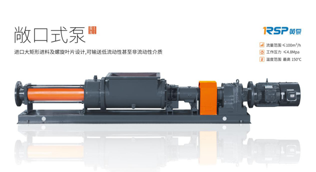 第二款黃泵敞口式單螺桿泵進(jìn)口腔體為矩形進(jìn)料斗設(shè)計,內(nèi)裝有進(jìn)料螺旋葉片,可輸送高粘度、流動性差或非流動性介質(zhì),如脫水污泥等,工作壓力2.4Mpa,流量50m³/h。產(chǎn)品特點為以下幾點。