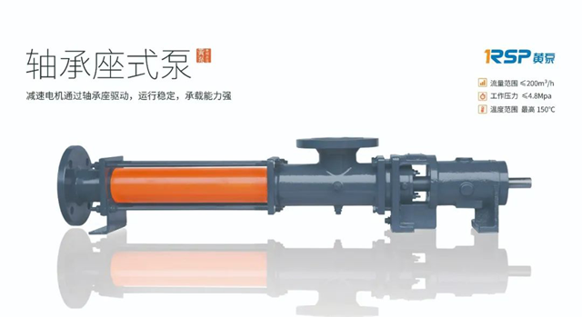 其中第一款軸承座式泵通過軸承座驅(qū)動,運(yùn)行穩(wěn)定,承載能力強(qiáng),剛性好,維護(hù)方便。適合輸送有固體顆?;蚶w維,流動性較好或一般的介質(zhì)。最大流量可輸送200m³/h,工作壓力2.4Mpa。
