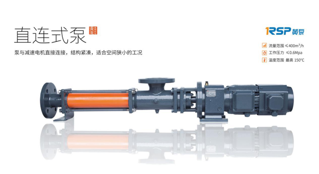 第四款直連式單螺桿泵泵體和減速電機(jī)直接連接,結(jié)構(gòu)緊湊,所需安裝空間更小,重量更輕,維修拆卸更簡便。適合輸送有固體顆?;蚶w維,流動性較好或一般的介質(zhì)。