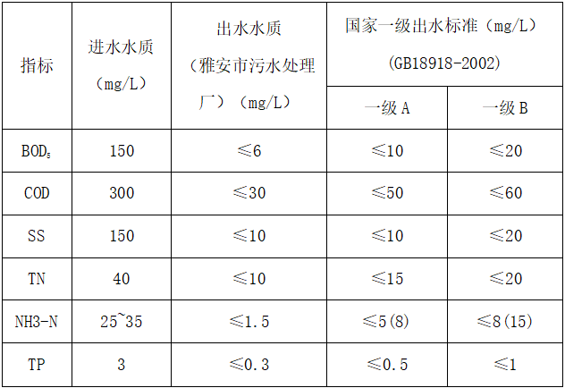 青衣江屬岷江水系,雅安市位于岷江上游,提高污水處理廠排放標(biāo)準(zhǔn)必將提高岷江的環(huán)境水質(zhì)指標(biāo)。提高青衣江環(huán)境水質(zhì)指標(biāo)不僅要依靠進(jìn)一步加大城鄉(xiāng)水環(huán)境綜合治理力度,源頭減排,過程控制,繼續(xù)深入推進(jìn)河渠下河排水口治理,同時,提升污水處理廠排放標(biāo)準(zhǔn),使其和地表水環(huán)境質(zhì)量標(biāo)準(zhǔn)接軌,也是從根本上減少污染物排放,盡快推動水環(huán)境質(zhì)量達(dá)標(biāo)的重要措施。原雅安市污水處理廠排放標(biāo)準(zhǔn)為一級B標(biāo),尾水排入青衣江。