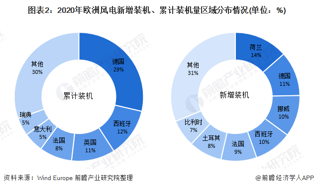 2、2020年德國風(fēng)電裝機(jī)規(guī)模最大、荷蘭新增裝機(jī)量最多