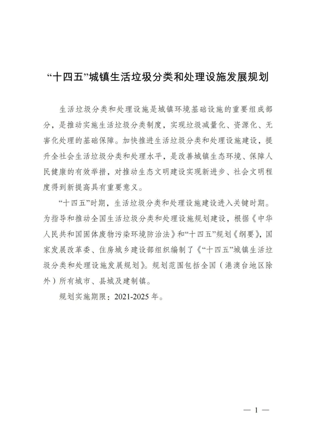 為深入貫徹習近平總書記關于生活垃圾分類的重要批示指示精神,落實黨中央、國務院決策部署要求,統(tǒng)籌推進“十四五”城鎮(zhèn)生活垃圾分類和處理設施建設工作,加快建立分類投放、分類收集、分類運輸、分類處理的生活垃圾處理系統(tǒng),國家發(fā)展改革委、住房城鄉(xiāng)建設部組織編制了《“十四五”城鎮(zhèn)生活垃圾分類和處理設施發(fā)展規(guī)劃》?,F(xiàn)印發(fā)你們,請遵照執(zhí)行。