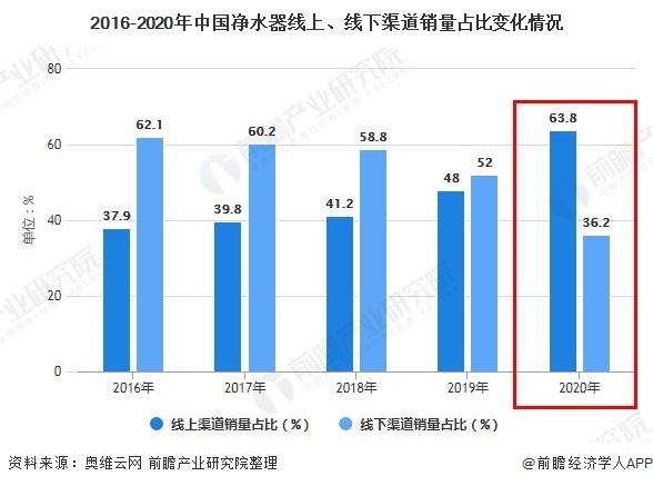 2、中國(guó)凈水器線(xiàn)上銷(xiāo)量超過(guò)線(xiàn)下