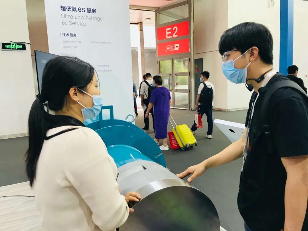在產(chǎn)品展區(qū)內,不少專業(yè)觀眾對分體式超低氮燃燒器表現(xiàn)出濃厚興趣,紛紛駐足咨詢。該款設備融合了多級燃燒和煙氣內循環(huán)技術(FIR);在工藝設計上優(yōu)化了風道結構,采用間接旁路點火的方式;配置了空氣和燃料配比自控系統(tǒng),進一步保障了節(jié)能“低碳”;獨特的結構設計,使得設備安裝便捷;可適配20t/h鍋爐,真正實現(xiàn)氮氧化物30mg/m³以下超低排放。