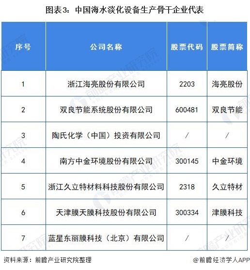 從細(xì)分市場(chǎng)來(lái)看,我國(guó)海水淡化設(shè)備行業(yè)中的骨干企業(yè)包括浙江海亮股份有限公司、雙良節(jié)能系統(tǒng)股份有限公司、陶氏化學(xué)(中國(guó))投資有限公司、南方中金環(huán)境股份有限公司、浙江久立特材料科技股份有限公司、天津膜天膜科技股份有限公司、藍(lán)星東麗膜科技有限公司等。