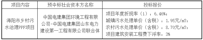海陽市鄉(xiāng)村污水治理PPP項目預(yù)中標(biāo)結(jié)果公示