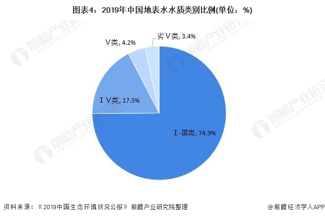 由于,在我國用水結構中農(nóng)業(yè)用水和工業(yè)用水的占比較大,尤其工業(yè)用水帶來的污染程度較高,水資源污染問題仍是我國需要解決的問題。根據(jù)生態(tài)環(huán)境部發(fā)布的《2019中國生態(tài)環(huán)境狀況公報》,2019年全國地表水仍有3.4%為劣V類水體。