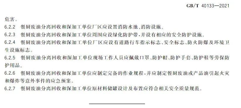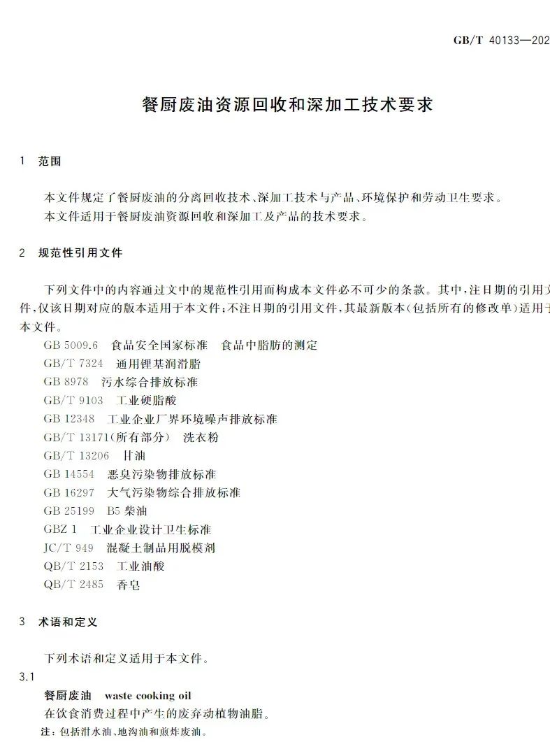 該國標(biāo)對(duì)餐廚廢油的分離回收技術(shù)、深加工技術(shù)與產(chǎn)品及環(huán)境保護(hù)和勞動(dòng)衛(wèi)生做出規(guī)范要求,是我國第一項(xiàng)餐廚廢油回收和深加工技術(shù)的國家標(biāo)準(zhǔn),改觀了餐廚廢油資源回收和深加工處于有技術(shù)、無標(biāo)準(zhǔn)的狀態(tài),對(duì)于餐廚廢油資源回收和深加工及產(chǎn)品具有深遠(yuǎn)的指導(dǎo)性意義。