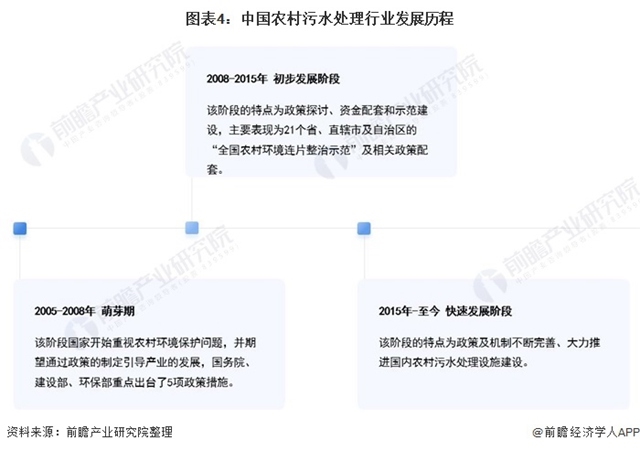 2015之后為快速發(fā)展階段,該階段的特點為政策及機制不斷完善、大力推進國內(nèi)農(nóng)村污水處理設(shè)施建設(shè)。