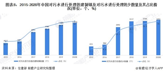 此外,全國農(nóng)村地區(qū)對污水進行處理的建制鎮(zhèn)及鄉(xiāng)數(shù)量不斷增加。截止2019年底,對污水進行處理的建制鎮(zhèn)及鄉(xiāng)的數(shù)量分別為11186個和3156個;截止2020年底,及鄉(xiāng)的數(shù)量分別為11970個和3253個。