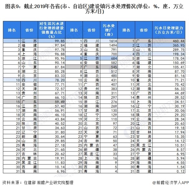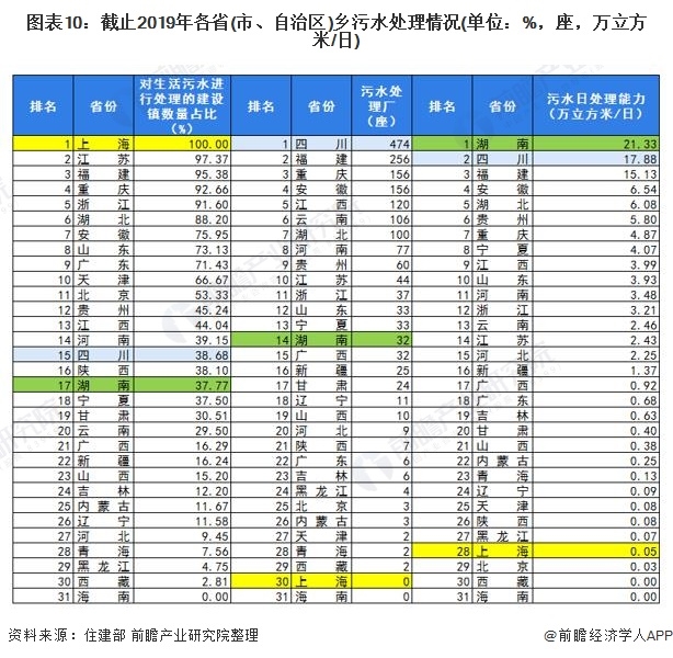 1、區(qū)域競爭:四川農(nóng)村污水處理廠數(shù)量最多,海南并未有鄉(xiāng)進行生活污水處理