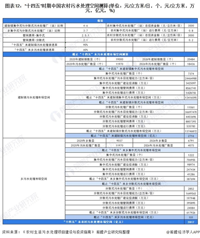 同時結(jié)合我國農(nóng)村居民整體居住較廣且分散的特點,以及目前農(nóng)村污水處理滲透率、污水處理廠數(shù)量等情況,前瞻初步測算,截止“十四五”末,全國農(nóng)村污水處理市場空間約為2817億元。