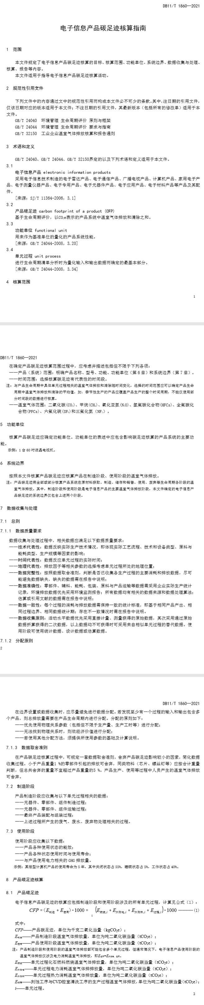 本文件規(guī)定了電子信息產(chǎn)品碳足跡核算的目標(biāo)、核算范圍、功能單位、系統(tǒng)邊界、數(shù)據(jù)收集與處理、核算、報告等內(nèi)容。