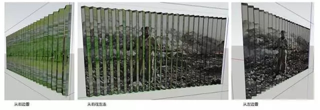 這堵參觀墻暗藏玄機(jī),從左右兩側(cè)不同角度看會(huì)看到完全不同的兩幅畫面,從右邊看看到的是綠色的充滿生氣的地球風(fēng)景,而一路從右往左走去,從左側(cè)看到的則是工人在垃圾堆里工作的情形,從垃圾堆積前后的環(huán)境對(duì)比,直觀而震撼地向觀眾展現(xiàn)了隨意丟棄生活垃圾對(duì)土壤、空氣、水資源、人類健康造成的危害。