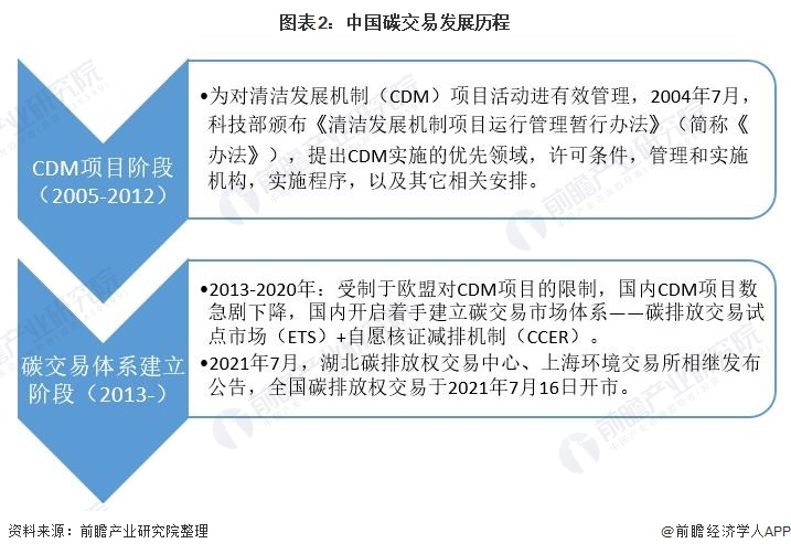 我國碳交易體系建立階段包括碳交易試點與全國統(tǒng)一碳排放權(quán)交易兩個階段。2013年起,我國借鑒歐盟碳交易機制(EU-ETS),在北京、天津、上海、湖北、廣東、深圳、重慶、福建、四川九個省市開啟區(qū)域碳排放交易試點。2021年7月16日,全國碳排放權(quán)交易開市。