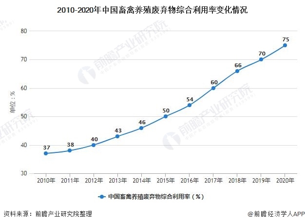 4、2020年中國(guó)畜禽養(yǎng)殖廢棄物綜合利用率達(dá)到75%