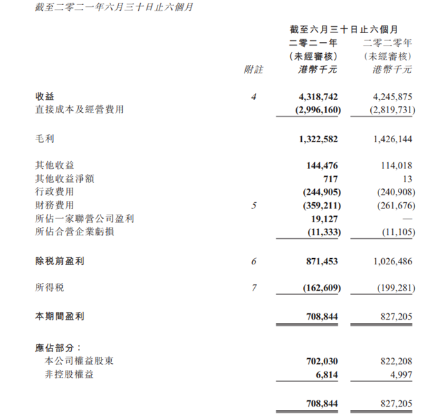 2021年上半年,公司收益為港幣43.18億元,較去年同期增長2%,除利息、稅項、折舊及攤銷前盈利為港幣15.91億元,較去年同期增長2%本公司權(quán)益股東應(yīng)占盈利為港幣70.2億元,較去年同期減少15%。