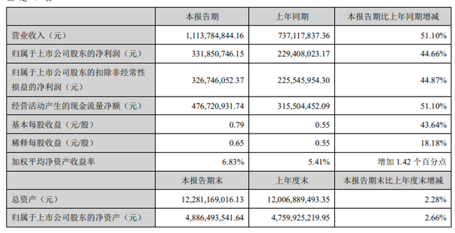 2021年上半年,公司經(jīng)營情況良好,共實現(xiàn)營業(yè)收入 30.98億元,實現(xiàn)歸母凈利潤7.59億元,截至2021年6月30日,公司資產(chǎn)總額206.47億元,歸母凈資產(chǎn)83.22億元。