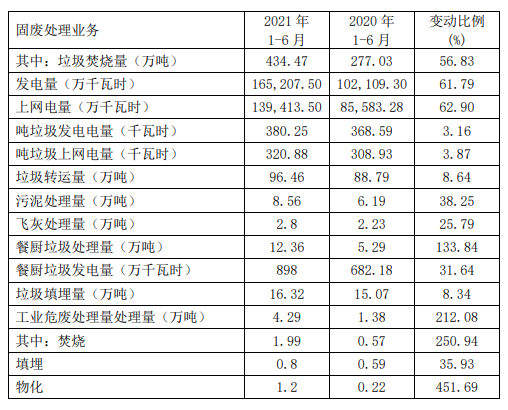 2021年上半年,公司在夯實環(huán)境及公用事業(yè)項目投資建設(shè)和高速公路開發(fā)運營的基礎(chǔ)上,緊抓河南省靜脈產(chǎn)業(yè)園政策機遇,大力發(fā)展垃圾焚燒發(fā)電業(yè)務(wù),拓展生活污水處理和新環(huán)衛(wèi)業(yè)務(wù),不斷增強公司盈利能力和在行業(yè)的影響力。