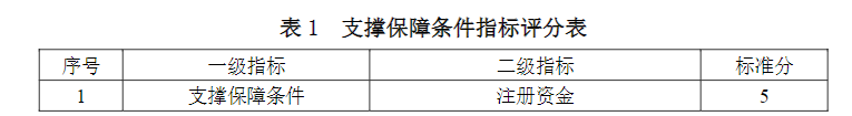 支撐保障條件指標包括環(huán)境咨詢(環(huán)保管家)服務單位的注冊資金、上年度營業(yè)收入、員工數(shù)量、職稱、質(zhì)量管理體系以及業(yè)務培訓6項二級指標。支撐保障條件指標評分見表1。