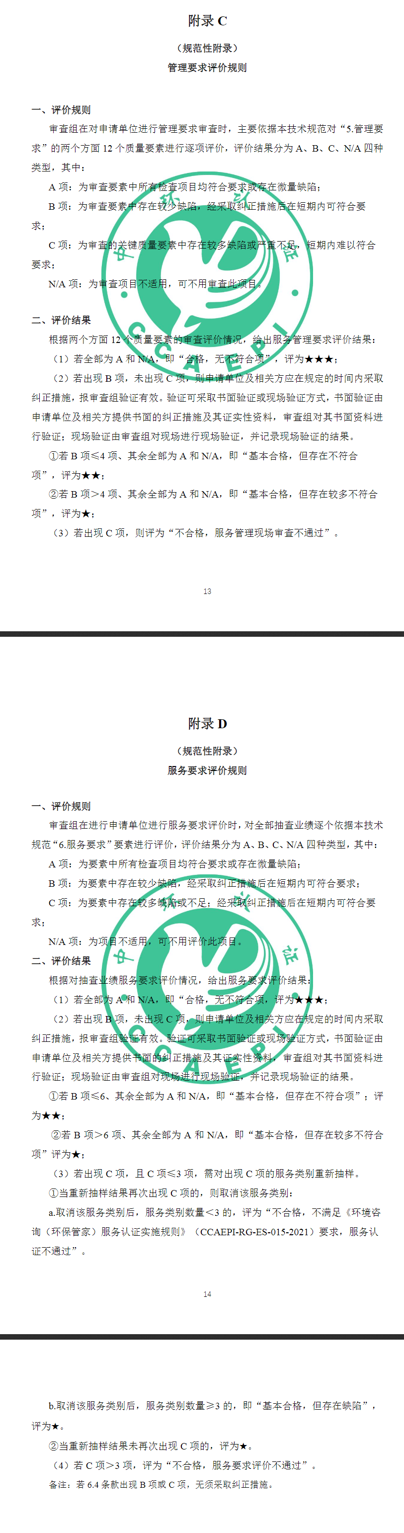 1.《環(huán)境咨詢(環(huán)保管家)服務認證實施規(guī)則》(CCAEPI-RG-ES-015-2021)
