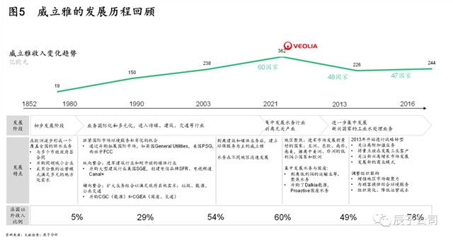 任何大企業(yè)的長成都不是一日之功,全球生態(tài)環(huán)保巨頭威立雅的發(fā)展之路照樣坎坷,歷經(jīng)160年發(fā)展,直到上世紀(jì)80年代后才真正開始走上快速發(fā)展的道路,經(jīng)歷了之后30年的擴(kuò)張(見圖5)。