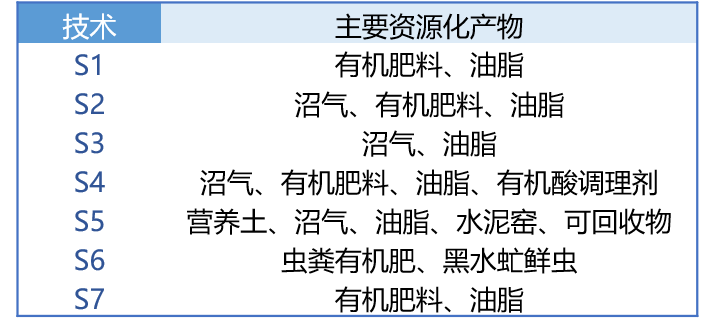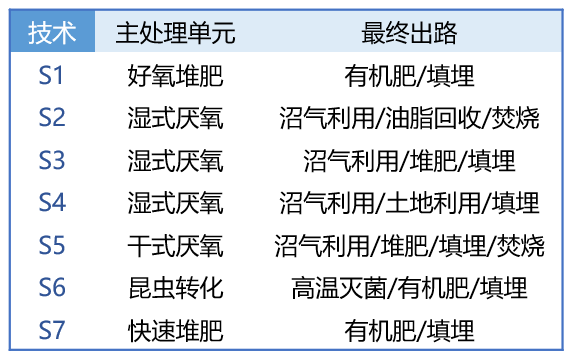 本報告中選擇的七種典型廚余垃圾處理方案包括: