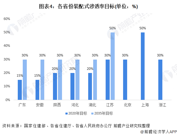 目前我國各地的政策也在大力支持裝配式施工方式的推廣。廣東、安徽、陜西等多數(shù)省份均對此設(shè)立了2035年滲透率達到30%的目標(biāo),北京、上海、江蘇、浙江等經(jīng)濟發(fā)達地區(qū)則更為嚴苛,分別設(shè)定了2020年滲透率達到30%、50%的目標(biāo)。隨著“碳達峰”“碳中和”政策的持續(xù)加碼,以數(shù)字化技術(shù)支持綠色環(huán)保的新型施工方式將有更大發(fā)展空間。