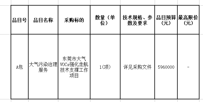 原標(biāo)題:東莞市大氣VOCs強(qiáng)化走航技術(shù)支撐工作項(xiàng)目招標(biāo)公告