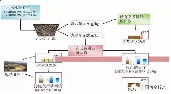 經過十多年的修訂,德國污水處理廠污泥法(AbfKl?rV)在2017年8月正式宣布生效。新版規(guī)范明確規(guī)定, 在規(guī)定的過渡期(12年或15年)之后,所有規(guī)模超過5萬人口當量的污水廠都必須從污泥或者污泥灰燼內進行磷回收,同時禁止污泥土地利用。