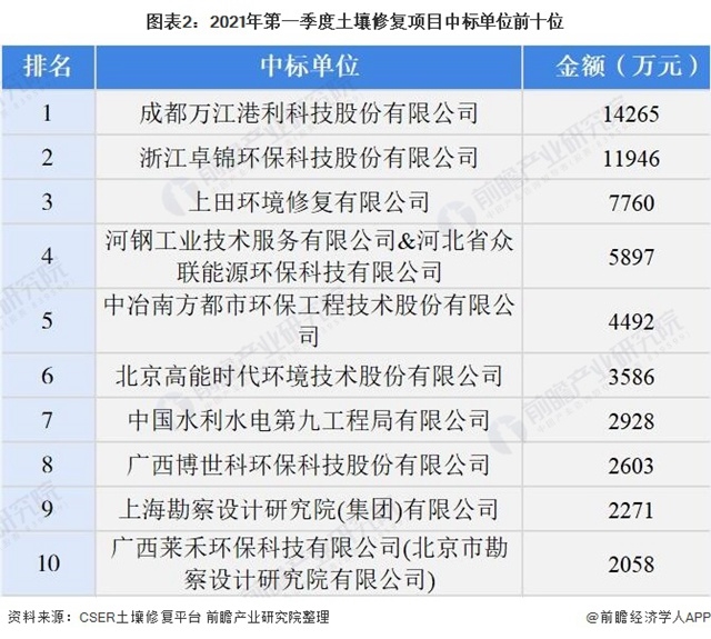 2、中國(guó)土壤修復(fù)項(xiàng)目中標(biāo)單位排名