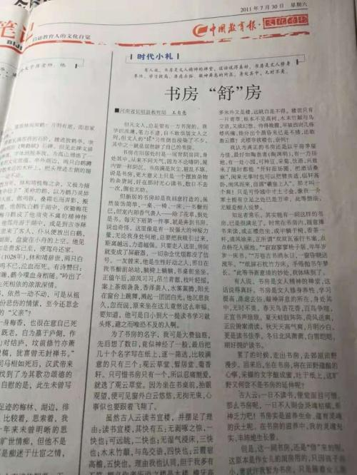 1997年,在校園文學刊《蒲園》發(fā)表文章,2008年,在《新鄉(xiāng)日報》發(fā)表文章,2011年來,接連在《中國教育報》《中國教師報》《工人日報》《中國紀檢監(jiān)察報》《文匯報》《科學時報》《中國建材報》《思維與智慧》《讀者》《青年文摘》《牧野文學》等發(fā)表作品,2012年,《山寺之夜》在《人民日報》大地副刊發(fā)表,問鼎國家第一大報的文學圣殿……作品接連在各大報刊發(fā)表,他的創(chuàng)作達到了一個小高潮。贏得了一點小小的聲名,各種贊譽也隨之而來。但只有他自己,明白那其中的苦辛:每日早起晚睡,眼熬紅了,發(fā)變稀了,不敢笑,一笑,眼角就是深深的皺紋。頗類于韓愈的“口不絕吟于六藝之文,手不停披于百家之編。”“焚膏油以繼晷,恒兀兀以窮年。”當十多年不見的同學見到他的照片,驚嘆:天啊,到底經(jīng)歷了什么?把以往的小鮮肉摧殘成這般模樣。對此,他淡然一笑,有痛,更多的是充實和欣慰。他堅信,他的付出是值得的。