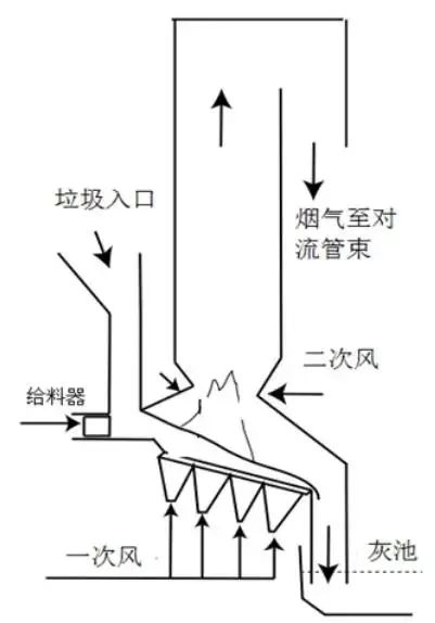 (2)對于第二個T的控制,是煙氣在爐膛及二次燃燒室內(nèi)的停留時間大于2秒,可實現(xiàn)二惡英的分解。從工程角度考慮將控制條件設(shè)定為爐膛溫度達到850℃時,煙氣停留時間不低于2s,可確保二惡英的高溫分解。是否可再提高煙氣停留時間,則取決余熱鍋爐設(shè)計和制造單位的設(shè)計與制造。焚燒爐低于額定焚燒量運行,且垃圾低位熱值小于設(shè)計值時,根據(jù)自動燃燒控制系統(tǒng)的指令,輔助燃料系統(tǒng)可自動啟動,由輔助燃燒器向爐內(nèi)噴輔助燃料,以確保爐膛溫度>850℃,并維持不低于2s。