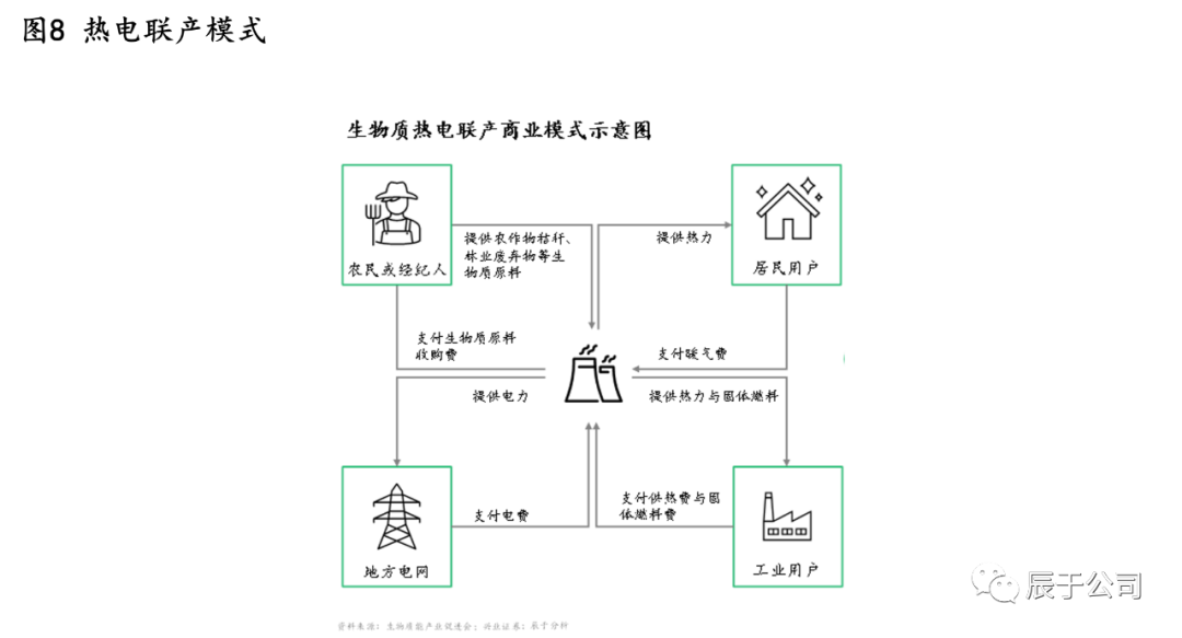 盈利壓力一方面將促進(jìn)行業(yè)洗牌,在優(yōu)勝劣汰的過(guò)程中預(yù)計(jì)行業(yè)集中度將逐步提升,民營(yíng)企業(yè)的份額會(huì)逐步降低;另一方面,行業(yè)也在積極探索新的商業(yè)模式,提升項(xiàng)目盈利性,其中熱電聯(lián)產(chǎn)是主要的方向(見(jiàn)圖8)。相比單純發(fā)電賣(mài)錢(qián),熱電聯(lián)產(chǎn)在發(fā)電過(guò)程中產(chǎn)生的剩余熱量也通過(guò)向居民或工業(yè)用戶(hù)供熱的方式來(lái)獲取收入,能量利用率得到提升,經(jīng)濟(jì)效益和社會(huì)效益都更好。