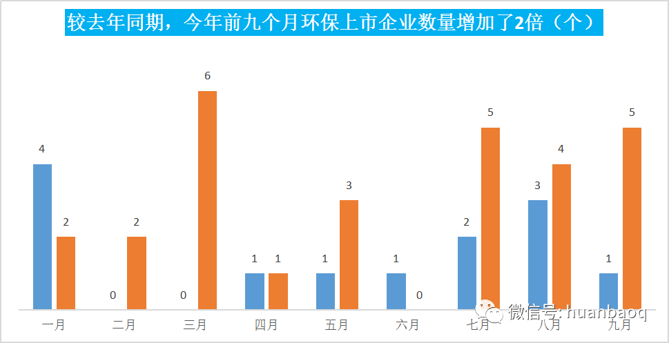 ▼圖二:今年前9個月環(huán)保企業(yè)掛牌數(shù)量比去年增加了2倍