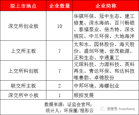 僅剛剛過去的第三季度,就有海螺創(chuàng)業(yè)、云南水務、正和生態(tài)、宇通重工、深水規(guī)院、中蘭環(huán)保、大地海洋、和達科技、唯賽勃等14家傳來擬掛牌分拆上市的消息,這數(shù)量已是去年全年掛牌上市數(shù)量的總和。3個月累計14家企業(yè)登陸資本市場,也就是說,基本上不到一周,就會有一家環(huán)保企業(yè)傳來喜訊,走紅毯,敲終上市。“本以為受年初IPO全面審核趨嚴的信號,今年環(huán)保產(chǎn)業(yè)IPO熱潮會降溫,沒想到不降反增。也沒有像其他行業(yè)因為監(jiān)管部門突擊檢查,紛紛陷入撤回材料終止審核的窘態(tài)?!蹦抄h(huán)保投行人士表示。《第一財經(jīng)》曾經(jīng)做過統(tǒng)計,僅在今年3月的前18天,就有8家科創(chuàng)板、12家創(chuàng)業(yè)板企業(yè)終止審核。今年2月份以來,已有逾50家IPO企業(yè)因撤回材料而終止審核,其中有16家是因為抽中現(xiàn)場檢查而撤回材料。反觀常常被資本忽視的環(huán)保行業(yè),卻是“真金不怕火煉”,在年初政策風聲較緊的3月,迎來了掛牌上市的高潮,當月共有園林股份、順控發(fā)展、海天股份、建工修復、深水海納、元琛科技等6家企業(yè)敲鐘上市,掛牌數(shù)量比今年任何一個月都要多,甚至有望創(chuàng)下年度IPO數(shù)量最多的月份。相比股市上流行的各種“XX茅”,或許“環(huán)保茅”才是真正的王者。同時,我們還欣喜地看到,去年下半年陸續(xù)IPO過會的同興環(huán)保、華騏環(huán)保、百川暢銀環(huán)保、太和水、建工環(huán)境、深水海納、海天股份、元琛環(huán)保、盛劍環(huán)境、青達環(huán)保,中蘭環(huán)保等,這11家環(huán)保上市都在今年上半年成功掛牌上市,正式邁入資本市場。不過值得一提的是,同樣去年下半年IPO過會的華新綠源環(huán)保就沒有那么順利了,直到現(xiàn)在也遲遲沒有敲鐘上市的消息。創(chuàng)業(yè)板/科創(chuàng)板成IPO主戰(zhàn)場