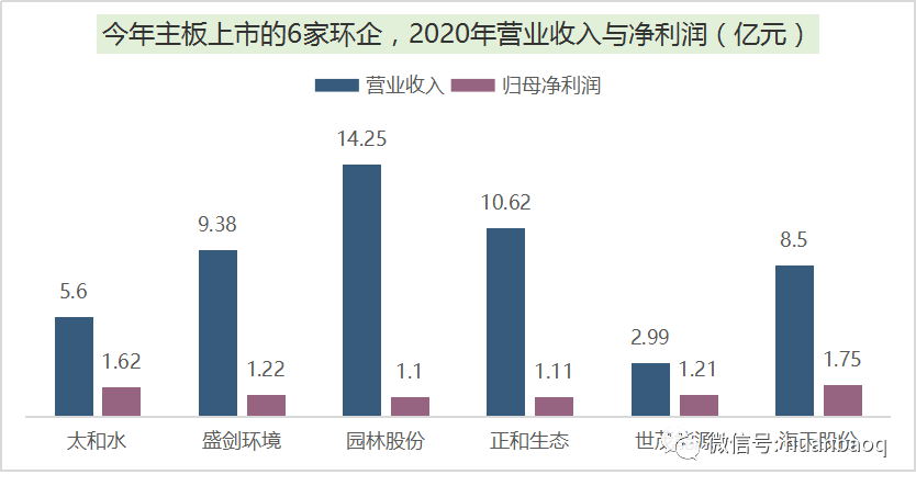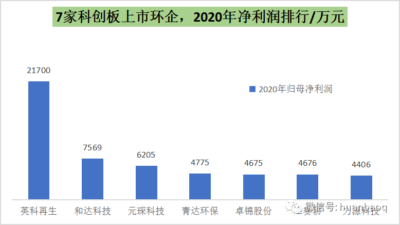 接下來,再說說大家比較關(guān)心的,今年上市企業(yè)的股價漲幅、最新市值和盈利水平。我們選擇主板、創(chuàng)業(yè)板、科創(chuàng)板上市的企業(yè)分別進行對比。今年在主板上市的共有7家企業(yè),分別為太和水、園林股份、海天股份、盛劍環(huán)境、世茂能源、正和生態(tài)和宇通重工,由于宇通重工是通過大股東摘帽變更方式上市而來,暫且不對其進行評價。剩下6家企業(yè)中,根據(jù)10月14日的收盤價,太和水和園林股份竟然跌破發(fā)行價,尤其是太和水,從發(fā)行價的43.3元/股跌至34.91元/股,總市值蒸發(fā)了近14億元。而同為主板上市的盛劍環(huán)境則表現(xiàn)極佳,這家從事半導體廢氣治理、煙氣凈化的公司,在國內(nèi)半導體產(chǎn)業(yè)大發(fā)展背景下,股價從19.87元/股漲至56.73元/股,總市值升至70.3億元,成為今年主板上市市值最高環(huán)保企業(yè)。這6家主板上市環(huán)企,2020實現(xiàn)營業(yè)收入大多位于5億元-14億元之間,歸母凈利潤也大多在1億元-2億元,營收最高的是杭州園林股份的14.25億元,凈利最高的則是成都海天股份的1.75億元。自上市以來,海天股份動作頻頻,半年前還收購了新開元等4座污水廠,然后又擬與康恒合資開公司,開拓四川垃圾焚燒/固廢業(yè)務。▼圖七:6家主板上市環(huán)企,2020年營收與凈利潤相對于主板上市企業(yè)的表現(xiàn)平平,今年10家在創(chuàng)業(yè)板上市的環(huán)企,股價清一色迎來大增,從8元-9元小盤股漲至20元-40元的中小型股,大多翻了2倍,或許跟創(chuàng)業(yè)板估值起飛有關(guān)。其中,百川暢銀(垃圾填埋氣發(fā)電)和倍杰特(高鹽度工業(yè)廢水治理)值得一說,不是由于股價翻了幾翻,而是在于它們卓越的賺錢能力。相較于其他上市環(huán)企的幾千萬凈利,去年在飽受疫情沖擊的情況下,這兩家企業(yè)的凈利潤竟然都過了億,比老牌上市企業(yè)盈利能力還要強。▼圖八:10家創(chuàng)業(yè)板上市環(huán)企,2020年凈利潤排行接著,我們再看科創(chuàng)板,相對于去年的11家,今年科創(chuàng)板上市的環(huán)企只有7家,分別是英科再生、和達科技、青達環(huán)保、力源科技、卓錦股份、元琛科技、唯賽勃。這7家企業(yè),除了英科再生(塑料回收再生)2020年歸母凈利潤遙遙領先之外,其余幾家凈利潤都在幾千萬左右。值得一提的是膜企唯賽勃,去年營收和凈利潤雙雙下滑,其中凈利潤下滑30%至4674萬元,這也從側(cè)面說明了科創(chuàng)板企業(yè)過會門檻相對較低。▼圖九:7家科創(chuàng)板上市環(huán)企,2020年凈利潤排行